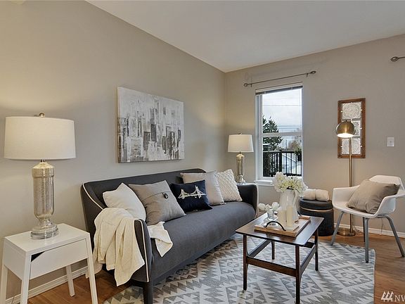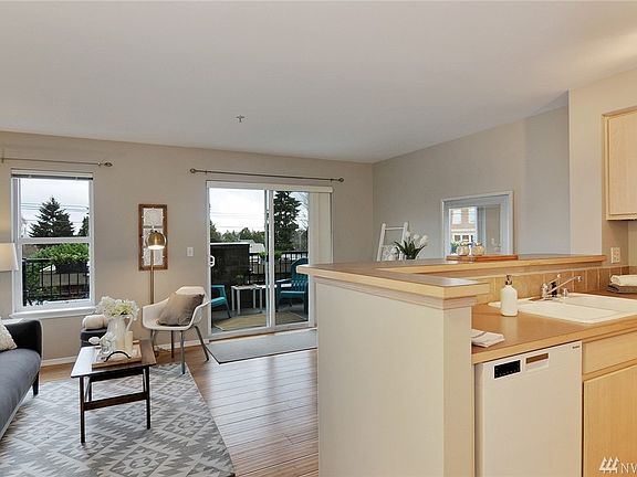 One bedroom condo in the heart of Greenwood! Open floor plan with spacious kitchen & dining area. Extra large balcony, and W/D in unit. Bamboo floors, new carpet, paint, & H20. Grilling & lounging area on rooftop deck with Olympic Mountain views. Secure entry, & garage parking space. Sound HOA and no rental cap. Enjoy Greenwood's expanding plethora of pubs, restaurants and breweries! Short walk to parks and groceries too. Minutes from I-5, 99, Green Lake & multiple bus routes to downtown/SLU!