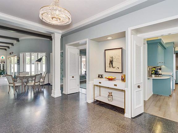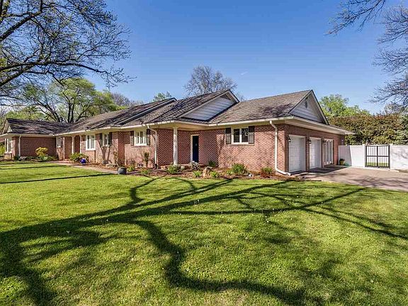 UPDATED Colonial Ranch on large corner lot with side-load garage. This gorgeous Woodlawn Village home has been lovingly restored to its Hollywood Regency glory and updated to serve contemporary living style. Highlights include refurbished terrazzo in the grand foyer and lounge areas, wood flooring, nugget ice machine, double ovens, gas cooktop and custom copper range hood. The expansive outdoor living area boasts a 7' gas fire feature and built-in grill with granite top. Experience the seamless transition from indoors to out with 15' sliding glass doors by Ador...a true Mid-Century delight. The guest quarters are separated from the main bedroom cluster ensuring comfort and privacy for all. Work from home? The large home office suite sits east of the garage with it's own entrance and HVAC, a half bath and access to patio. If storage is your need, look no further. The storage capacity is generous on the main level and ridiculous in the basement. Exterior storage includes a closet off the patio and 25' long storage room adjacent to the office. The greatest generation of Americans built the greatest generation of homes and this may be their poster child. It is definitely a must-see property for the pickiest of buyers. This is a very desirable location on the East side near Wichita's finest restaurants and retail.