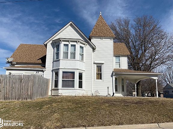 This Folk Victorian home was built in 1908! The unusual elements of the architecture are what sets this home apart form all others. 5 bedroom, 2 bath with detached 2 car garage. This stately home sits atop of the hill on Elm Street and has so much to offer! Vinyl siding, central heat and air conditioning. The kitchen is to die for at 280 square feet with laundry on the main level. Average monthly electric $155. Gas is $92. Enjoy the wrap around front porch as you watch the world go by in your rocking chair. Furnace new in2018 and central air added in 2021, electric updated in 2009 with 200 amp box. The large detached garage and dwelling roofs were replaced in 2008. All appliance except for washer & dryer included, but not warrantied, window treatments & upstairs tv stay! Many historic elements in this home that comes with fenced in side yard. Call for your short notice appointment today!