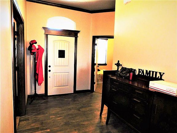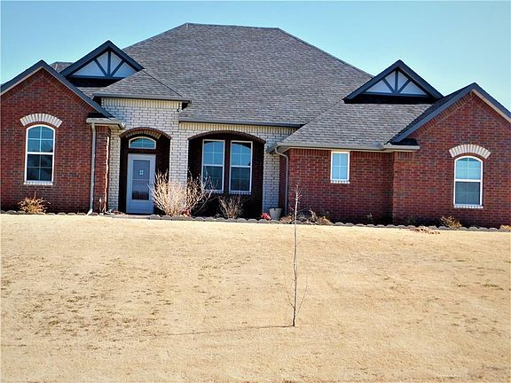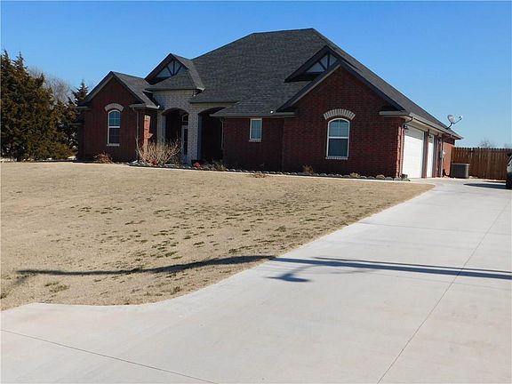 NEWCASTLE OKLA...BLT IN 2016 ON 1.0 ACRE. AWESOME FLOOR PLAN WITH 4 BEDROOMS, 3 BATHS & OVERSIZED 3 CAR GARAGE WITH IN GROUND STORM CELLAR. MOST OF THE HOME HAS 10' CEILINGS AND CROWN MOLDING. SPACIOUS ENTRYWAY WITH WOOD LOOK TILE & ARCHED DOORWAYS. LG LIVING WITH GAS LOG FIREPLACE, C/F AND PLENTY OF WALL SPACE FOR LG TV. KITCHEN AMENITIES INCLUDE: GRANITE COUNTERTOPS, LOTS OF STAINED OAK CABINETS W LAZY SUSAN, COUNTRY STAINLESS KITCHEN DEEP SINK, PANTRY, F/S STAINLESS GAS STOVE/OVEN, MICROWAVE, D/W, UNDER COUNTER AND RECESSED LIGHTING. DINING W SPACE FOR CHINA CABINET. 12X12 STUDY/OFFICE W FRENCH DOORS. MASTER SUITE W VAULTED CEILING, C/F, DOUBLE VANITY SINKS, WHIRLPOOL TUB, F/S SHOWER, AUSTRALIAN CLOSET W BUILT IN-SHELVING, PRIVACY STOOL W BLT-IN CABINET. 3 BEDROOMS W C/F'S 2 W VAULTED CEILINGS. 2 ADDITIONAL FULL BATHROOMS. LG AREA OF BACKYARD IS WOOD FENCED W LG ABOVE GROUND POOL, COV PATIO & STORAGE BLDG. GREAT CURB APPEAL W COV FRONT PORCH.