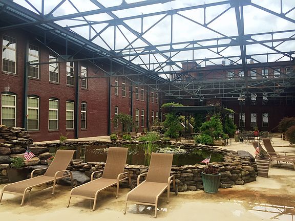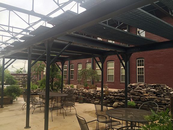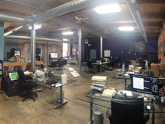 Modern open space office with a metropolitan feel. Lofted ceilings, exposed brick and stamped concrete floors give this unique space a trendy, big-city vibe. Large windows provide an abundance of natural light. A large open air courtyard lies just outside the door, perfect for employee lunches, team meetings or entertaining clients. A private parking garage is located on the lower lever, with elevator access to the main floor.