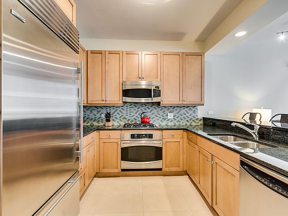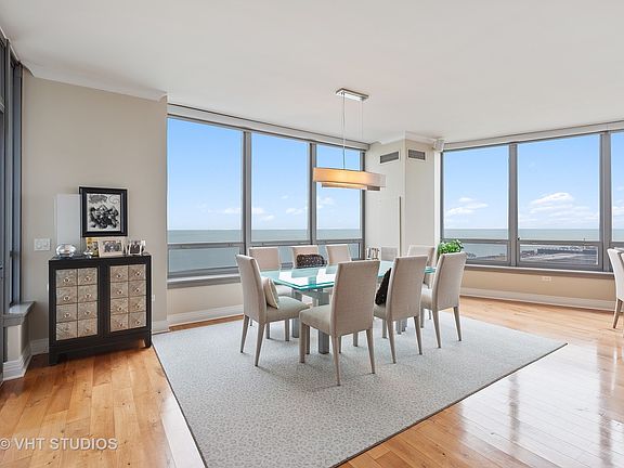 Phenomenal unobstructed views of lake & Navy pier in this perfect floorplan with incredible finishes. Walnut floors, designer cabinets with quartzite tops. Subzero, wolf, bosch & decor make cooking in this open kitchen a dream. Wet bar and wine cooler complete the entertaining area. Master boasts custom closets, bath has onyx wall with double sinks, steam shower & heated floors. Guests bathroom has a steam shower. Laundry room and generous storage space. Electric shades and sound system throughout. Two car side by side parking in prime location included!