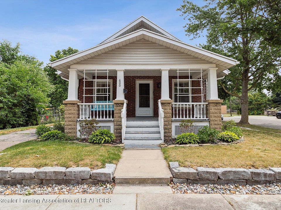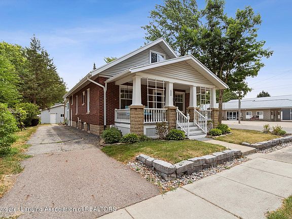 This home is a charmer and conveniently located within walking distance to downtown St. Johns! You are close to shopping, food, schools and so much more! The floors sparkle as you enter the home, from the covered front porch, and can immediately see the character and charm inside. Sip your morning coffee on the porch swing or relax after a long day's work. The large kitchen has a cafe style door to close off the space between the kitchen and dining room if you desire. Off of the kitchen, you will find a breakfast nook that leads to an enclosed back porch. You could possibly convert the ''nook'' to main floor laundry! This home has 4 bedrooms, 1.5 baths, storage galore and so much to offer its next owner. There are 2 bedrooms on the main floor, a full bath, 2 bedrooms on the 2nd level, a half bath, and as an added bonus; an office space or play area. If you don't need the 2 main floor bedrooms, you could create your own primary suite and use one bedroom as a wardrobe or huge walk-in closet! The possibilities are endless. The oversized 24x32 detached garage and back patio are amazing! There is a long driveway beside the home, as well as parking in the smaller drive of the detached garage. The garage drive is off of Steel Street. Some of the basement brick is from the old depot; the seller updated the landscaping around the home and it is beautiful!