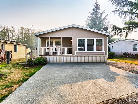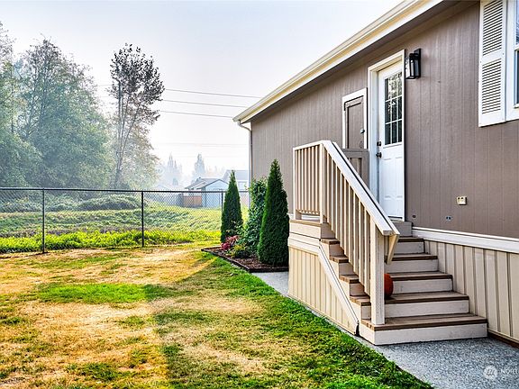 Affordable living at its finest! This 3 bedroom 2 bath 1500+ sq ft manufactured home offers an open floor plan with vaulted ceilings and laminate wood floors. A propane fireplace and built in entertainment wall offers the perfect spot to relax and unwind in the spacious living room. Large kitchen open to dining and living rooms with island eating area. Primary bedroom with en suite bath. Covered front porch entry and fresh paint highlight the exterior. Durable cement board siding. Convenient location close to schools, shopping and restaurants and easy I-5 access. This one is a must see!