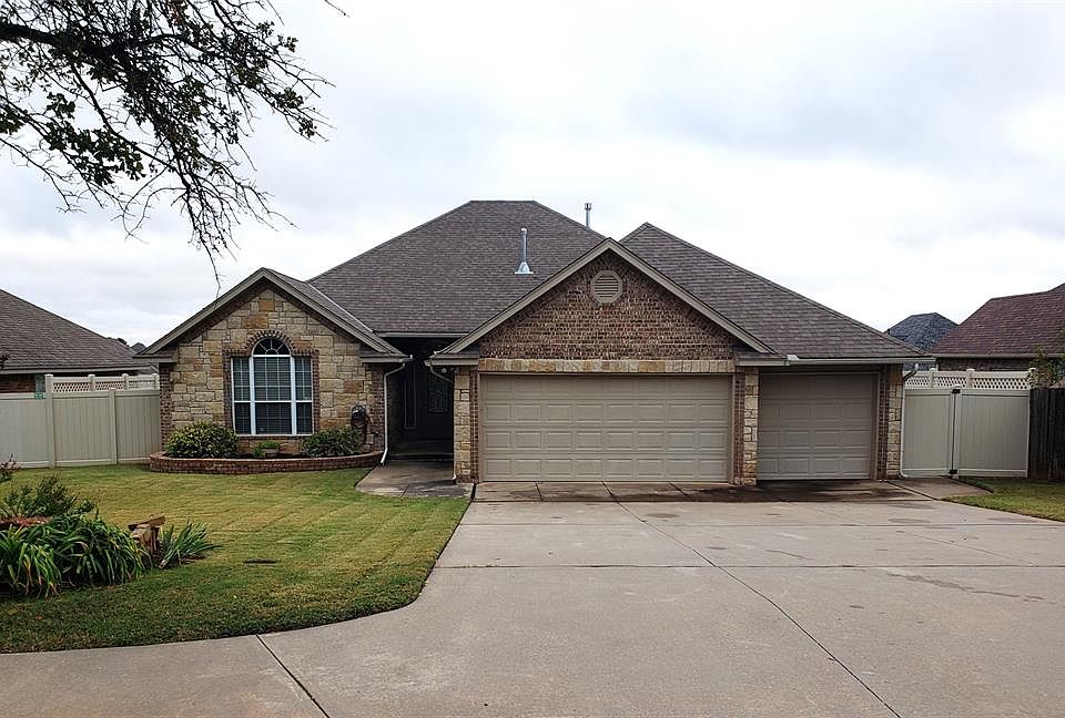 Pride of ownership shows here! Choctaw Schools! 3 or 4 bedrooms(optional study), 2 bathrooms, 3 car garage with STORM SHELTER. Open floorplan featuring raised ceilings, crown mouldings, fireplace, built-ins, etc. Spacious living room featuring a corner fireplace, great wall space & a ceiling fan. Nice kitchen featuring a breakfast bar, stainless appliances, a pantry and over/under cabinet lighting. Large master suite will accommodate king-sized furniture and also features a large bathroom area with a whirlpool tub, separate shower, double-sink vanity & large wrap-around walk-in closet. Convenient inside utility room. Exterior features include nice landscaping, a covered front porch, covered back patio, privacy vinyl fencing, storage building and a sprinkler system.