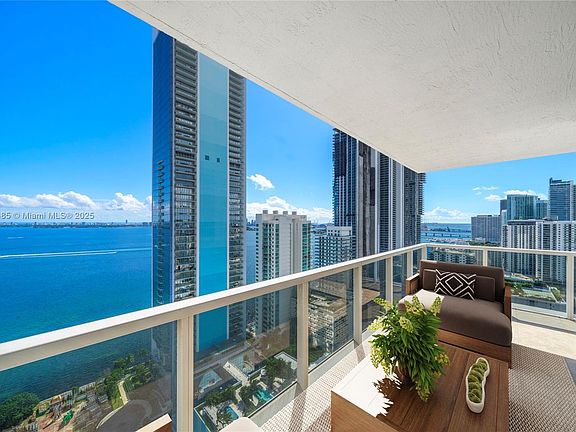 Bright and spacious southeast corner residence on the 31st floor of Bay House. The most desirable line in the building w/ breathtaking water views!! This 3-bed, 2.5-bath home features a modern European kitchen with pantry/laundry area, wraparound balcony off the living area plus a private balcony in the primary suite. The primary bath offers dual sinks, while two. bedrooms share a Jack-and-Jill bath with dual sinks and bathtub/shower. 3 parking spaces available, 2 included in list price. Bay House offers resort-style amenities: pool deck with cabanas, BBQ area, fitness center, and yoga studio. Perfectly situated in Edgewater with Starbucks and Whole Foods within walking distance, and an easy drive to the beach and airport. Minutes to Design District, Downtown Miami, and Brickell.