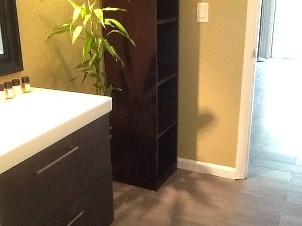 Modern, minimalist, floor to ceiling windows, huge balcony. White and grey. Porcelain floors grey wood. Granite counter tops. Walking closet. Sewer, trash, water, hoa covered in rental