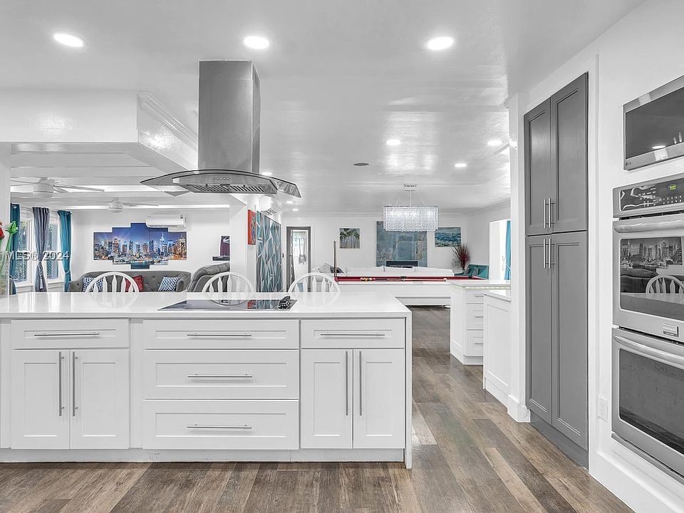 Paradise awaits you ! This completely remodeled home in Plantation. This home boosts over $150,000.00 in upgrades & over 4000sq footage. This home boosts 5 bedrooms , 3 bathrooms , One of a kind .. 2 master bedrooms!!! New kitchen /SS appliances, wood floors, washer & dryer, impact windows & doors , 2 car garage newly built with permits, roof less than 5 years old , newer electrical, outdoor kitchen/built in grill, huge backyard with lots of fruit trees, (mango, papaya, & much more) room for a pool & family entertainments. Driveway can hold up to 20+ cars . Lots of space to park your boat & RV . Pool table and chandeliers included on the sale.