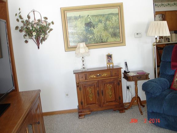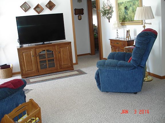 QUALITY describes this well maintained home. Large living room and kitchen with many cabinets. The 2 bedrooms arespacious. Master has large walk-in closet. B/R #2 has two closets. Cedar lined closet in hallway. Laundry has 2 closets aswell as many wall cabinets .Roof new 4/2013, New sump pump, Furnace & air new in 2012. Detached car-port is suitable forboat storage and has it's own concrete drive. There is an attractive gazebo covered patio. A MUST SEE