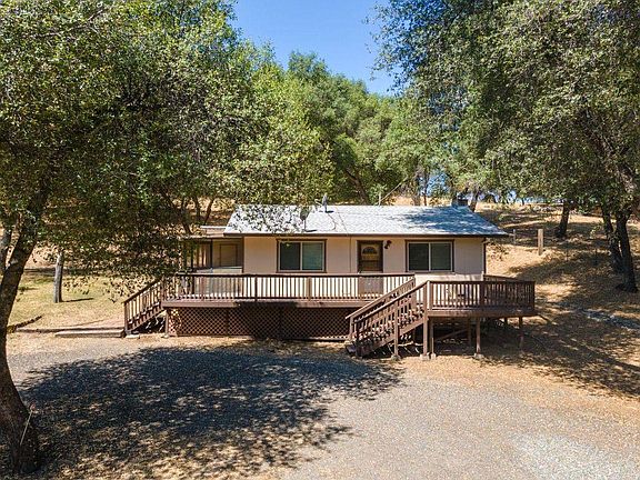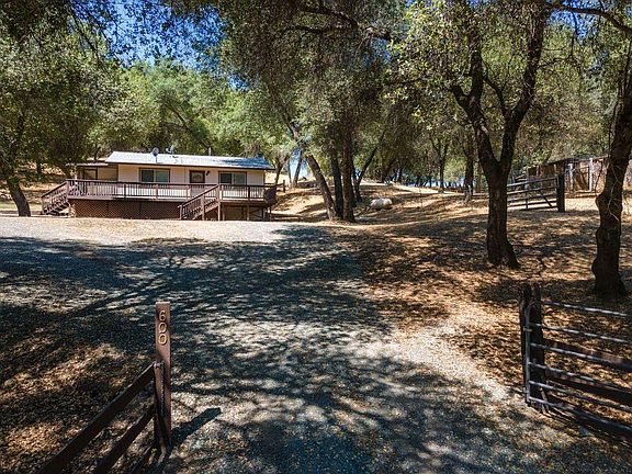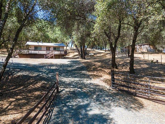 THIS GORGEOUS PROPERTY OFFERS LOTS OF OPTIONS! Located just minutes to the American River on a beautiful, serene 5+ ac. parcel, this home features an Updated kitchen with nice wood cabinetry, Central heat and wall air conditioner, Vinyl in the dining area, carpet throughout. Ceiling fans, propane fireplace in living room. Also Horse Tack bldg, chicken coop, and animal shelter. Perfect property for horses, small animals. Cross fenced. HIKING, SWIMMING,KAYAKING, HORSE BACK RIDING + HISTORICAL STATE PARK WHERE GOLD WAS DISCOVERED -LIVE THE GOOD LIFE HERE!