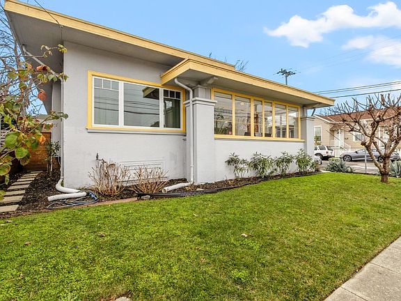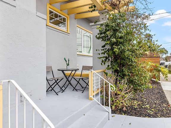Welcome to 600 Pacific Avenue, a beautifully maintained 1915 Craftsman on a prime corner lot in the heart of Alameda. This 2-bed, 1.5-bath single-story home blends vintage charm with modern comfort, featuring rich wood detailing, built-ins, and gleaming hardwood floors. Sunlit living and dining areas create a warm ambiance, while the updated kitchen boasts butcher block countertops, a farmhouse sink, and a cozy eat-in nook. Wood burning fireplace. Double-pane windows and air conditioning ensure year-round comfort. Outside, lush landscaping with thriving Bougainvillea, Hydrangea, and mature peach, plum, apricot & lemon trees creates a picturesque retreat. A covered front porch with a wall of windows enhances its Craftsman charm, while the private backyard features a hardscaped patio, raised decking, and vibrant greenery. The finished garage offers flexible space for an office or playroom, with a basement laundry and workshop for extra storage. Ideally located near top-rated schools, local parks, and Crown Memorial Beach, this home provides easy access to the Alameda Ferry Terminal for a scenic commute to San Francisco, as well as Spirits Alleys waterfront breweries and wineries. With additional commuting options via BART and Transbay buses, this timeless Craftsman is a rare find.