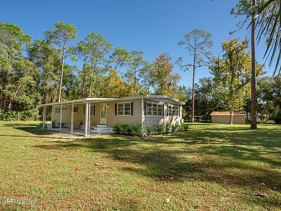 Your Welaka River-Life Retreat Awaits! Escape to this beautifully updated 3BR/2BA home on a nearly one-acre fenced corner lot in the heart of golf-cart-friendly Welaka, Florida—just minutes from the St. Johns River, boat ramps, and local dining and Pubs. With 1,344 sq ft of comfortable living space, this home blends small-town charm with modern updates: drywall interiors, newer vinyl siding, concrete foundation, a metal roof for lasting quality. Enjoy morning coffee on the front porch or unwind on the back porch after a day on the water. The property includes a 24×24 concrete workshop—perfect for hobbies, storage, or a potential guest house—plus an extra outbuilding, carport, and fish-cleaning station with water and power. With public water/sewer, a private well for irrigation, and plenty of room to relax or garden, this move-in-ready retreat captures the laid-back River Life Welaka is known for—where every day is another day in paradise!