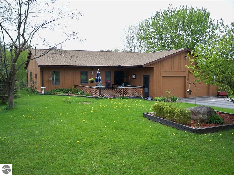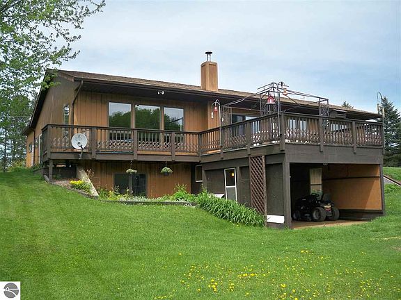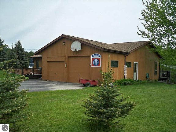 3 bedroom 2 bath home on 5 partly wooded acres with 305 feet of Houghton Creek running along the back of the property. A full finished walkout basement and an attached 2 car garage with paved driveway. The 24x24 detached garage has a heated, 9x24 complete canning kitchen on one side and storage on the other. A heated 12x12, finished sunroom with a small wood burning stove is at the edge of the large pond. There are also 2 sheds by the pond for storage. The 20x16 back deck overlooks the pond and gives great views of wildlife. There is also a deck on the front of the home. Island kitchen with dishwasher provides open feeling to living area. SELLER IS OFFERING A ONE YEAR HOME WARRANTY WITH THIS HOME.