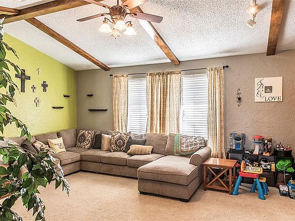 This gorgeous home is now priced at just $84.57/sq. ft. and ready for you to put your own stamp on it! Classic sunken living room with a beamed, vaulted ceiling, wood burning fireplace with gas ignition. Nice storage and counter space in kitchen with an eating bar, formal and informal dining areas. There is great flow to the covered patio in back where you'll find a huge (104 x 135.5) fenced back yard, pergola and storage building. You'll be impressed with the size all all three bedrooms. The hall bath has a long vanity with great storage and a tub shower combo. The master bedroom has wonderful space where you have room for a king size bed, dresser, couch or workout equipment. The unique master bathroom has two vanities; a tub and separate shower. What more could you ask for? Great space inside and out, quiet street, mature trees, 2 car garage with workshop space inside and plenty of paved parking outside. If you haven't seen this one yet, better hurry before it's gone!