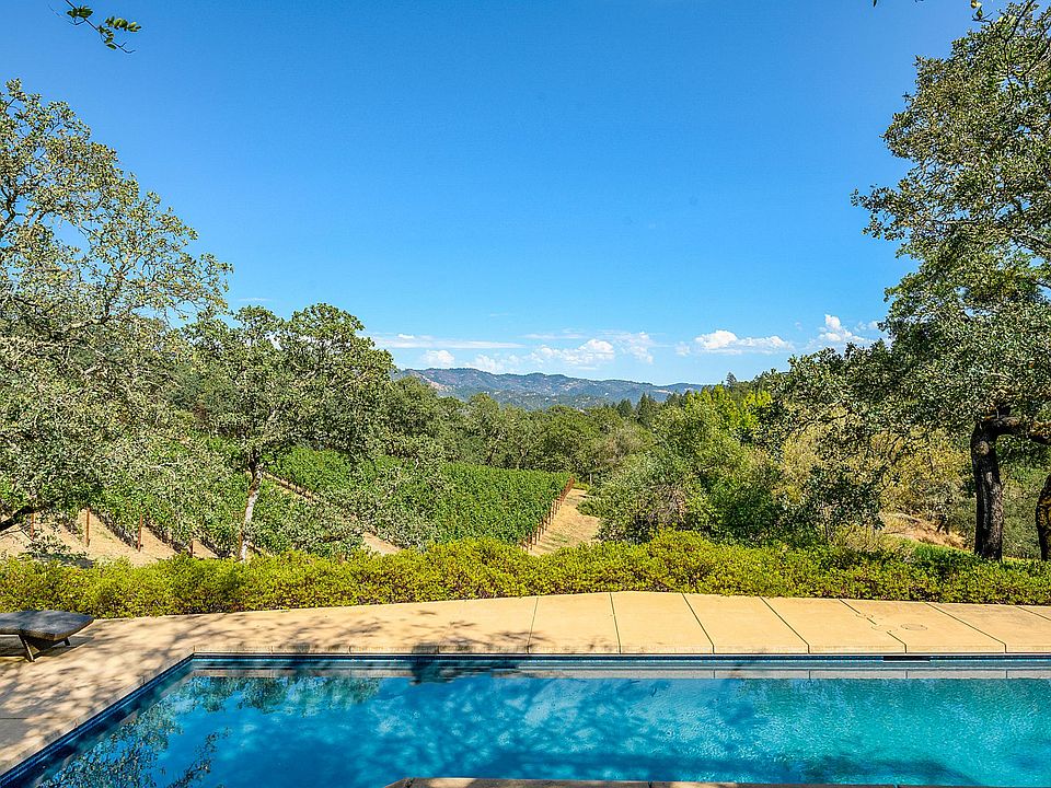 Two story wine country estate on a private 15 acre knoll with 2 stone fireplaces, gourmet kitchen and drop dead gorgeous views over the upper Napa Valley. Pool looks out over the estate Napa Cabernet Sauvignon vineyard and the upper Napa Valley. Large stone outdoor BBQ. Roomy 1 bedroom guest house with kitchen, bathroom and washer/dryer. Second double car garage with large wine cellar. Studio apartment with bathroom.