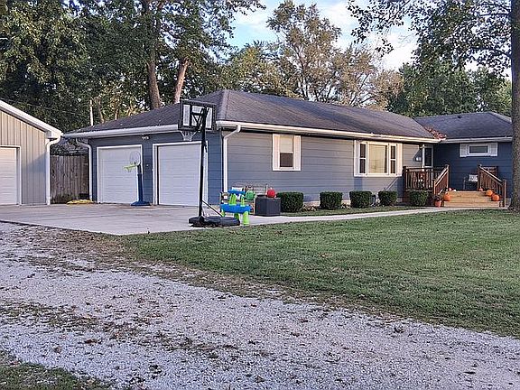 The property also includes a 16x18 insulated shop featuring natural gas heat and an epoxied concrete floor, ideal for hobbies or extra storage. Inside, the home boasts a semi-open concept layout with plenty of storage space, a two-car garage with a newer concrete floor, and an impressive 22x40 concrete apron outside for additional parking.