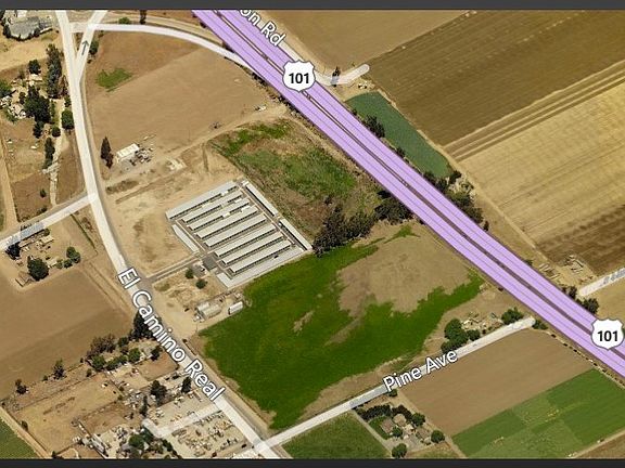 Excellent Corner Location Zoned Light Industrial. Lot consists of 13.2 (+-) acres of flat land with access from El Camino Real as well as Pine Avenue. Property Lot covers extensive area from El Camino Real to U.S. 101. Dynamic, high visibility and activity area near freeway and hub of interstate commerce. Easy ingress/egress from major freeway (U.S. 101).