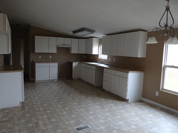 Spacious surroundings and spacious home. Easy living on one level, permanent foundation, @1.53 acres gently rolling, 4 bedrooms, 2.5 baths. Open great room with fireplace, large kitchen with pretty white cabinets.