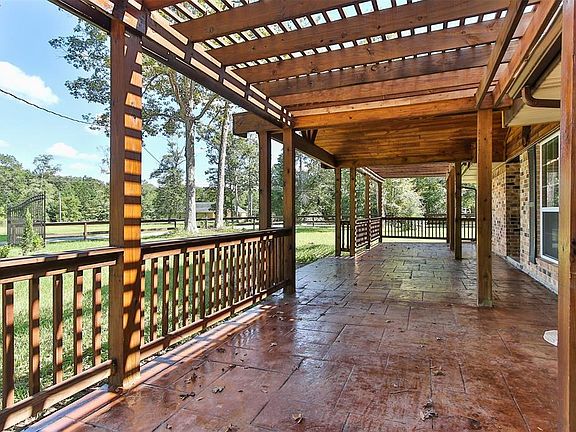 Beautiful fully remodeled home with great floorplan on over 2 picturesque fenced acres in well maintained subdivision. Horses allowed! Features three bedrooms: Large master with ensuite bath, large closet, sitting area, secondary bedroom with ensuite bath and walk in closet, third generously sized bedroom and hall bath. Large family room with cozy wood burning fireplace, beautiful tile. Kitchen with s/s appliances, including refrigerator; beautiful quartz counters and subway tile. Large dining area. Outside features enormous front porch with stamped concrete with pergolas, plenty of room to entertain or just enjoy the peaceful country setting. Huge back patio also with stamped concrete overlooks back acre of yard. Better than new with new a/c, roof, appliances, fixtures, too many fantastic upgrades to list. Come see this country charmer with all the modern conveniences!