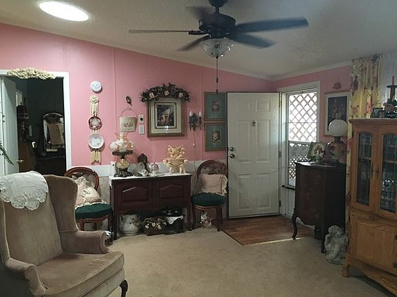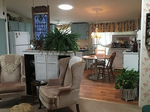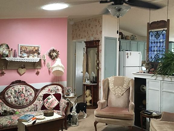 Charming Home with Great Curb Appeal! Nicely Xeriscaped for low maintenance, fully fenced yard! 3 Sided Covered Carport and Tuff Shed! Enter this home through the cozy Enclosed Porch. Spacious Living Room/ Kitchen/ Dining area has Vaulted Ceiling and Sky tubes for extra lighting! Split Bedroom Design has two bedrooms and a full bath on one end of the home. The west end of the home has a spacious Master Bedroom Suite includes a private 5 piece bathroom with Jetted Tub and Walk in Shower. Laundry Room with Back door out to a small deck and play area for your pets. Two small dogs under 25 lbs are allowed in park with pet deposit. Lot rent is $372.00.