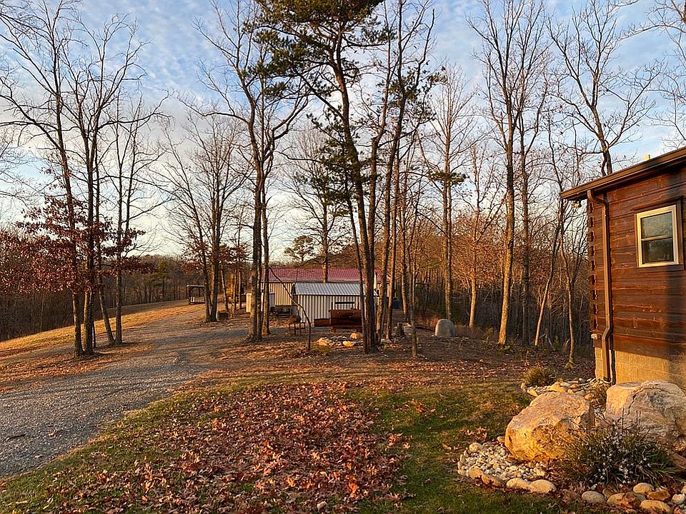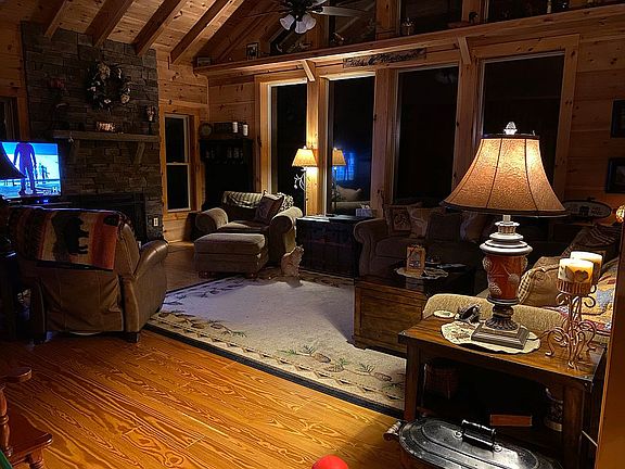 Log cabin situated on 26 acres of seclusion with views of The Blue Ridge Parkway, Skull Mountain and the valley below. Close to the Wineries, Mt Airy and Breweries.