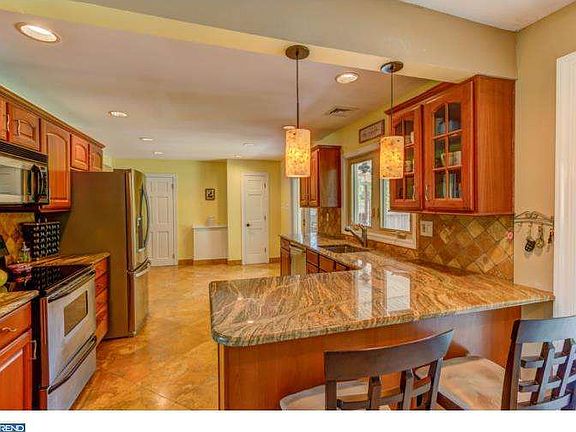 Nothing left to do but move in! Welcome to 600 Rose Hill Rd, your private oasis located in beautiful Broomall, Delaware County. The home was almost totally renovated in 2003 using only the highest quality materials and workmanship, and it shows in every square inch of the property. The 9-car paver driveway sets the tone of what's to follow, with professional landscaping alongside a paver walkway leading to the front door. Once inside, you're greeted by the living rooms 16 ft ceiling, oversized front and crescent windows, stone-walled fireplace, upgraded tile flooring and custom wrought iron railings leading to the second level. The massive kitchen is covered with imported stone floors, high-level granite countertops, cherry cabinets, tiled backsplash, stainless steel appliances, recessed lighting galore and two separate exits to the covered rear patio. On one side of the kitchen is the oversized family room, complete with hardwood floors, crown molding, ceiling fan and more recessed lighting; while on the other side of the kitchen is the spacious dining room. Laundry room, two bedrooms with hardwood floors and ceiling fans, and a totally renovated in 2011 spa-like bathroom complete the main floor. Upstairs, two additional bedrooms sit at either end of the house, with a large loft hallway (potential home office space?) and remodeled full bath completing the upper level. The rear covered patio is outfitted with two ceiling fans and propane grill hook-up, and offers a perfect view of the over half acre level fenced-in backyard, in-ground pool, gas-powered fire pit and organic vegetable gardens. The one-bay, detached garage towards the back of the grounds offers additional storage space or the opportunity for a workshop. All systems, roof, windows, ect are all only a few years old and in great condition. The HVAC system was converted from oil to gas (propane) in 2011, with a new furnace and hot water heater installed to power the hot water radiant floor heat. Nearly 2,500 sq ft of living space, located on a quiet tree-lined street in Marple-Newtown School District, with taxes under $4k/annually, all while centrally located minutes to I-476 (Blue Route), RT-3, and RT-320.