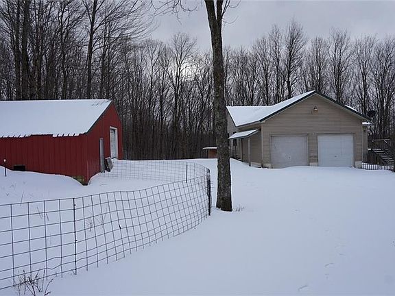 Fantastic opportunity to own a gentleman's farm, currently an active goat farm. Raised ranch style home with 3BRs, 2 full baths with tongue & groove thru-out. Main floor has large family room w/vaulted ceiling, slider to the deck & is open to the kitchen. Laundry w/built in pantry serves as entry from the 2 car attached garage. Master BR w/private bath and 2nd bedroom complete the main floor. Walk-out basement is partially finished offering 3rd bedroom + add'l family room with stone fireplace. All set on 31.2 acres w/multiple out buildings - 40x110 with electric & 4 horse stalls, 28x35 with electric & water, two add'l sheds & chicken coop + several fenced in pastures. Property is close to Winona State Forest plus easy access to both snowmobile & ATV trails.