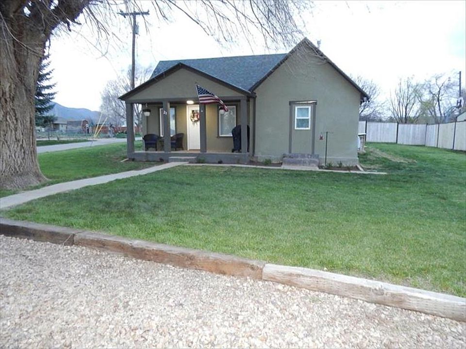 .24 acre lot, detached garage and beautifully remodeled home all nestled in quiet Fountain Green! (only 14 miles from Nephi). Large lot, covered porch, lots of shade, lots of grass and new sprinkling system. Loaded with recent upgrades including electrical, plumbing, furnace, water heater, roof, kitchen cabinets, countertops, flooring, paint and upgraded bathroom!! Also, the refrigerator, dishwasher, range, washer and dryer are all newer and "all" stay with the home! Newly graveled parking and RV pad! This home is immaculate inside and out! This home is a must see!