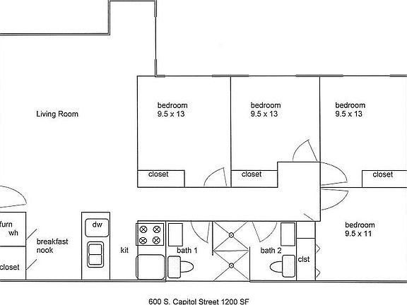 - Total interior livable area: 1,200 sqft