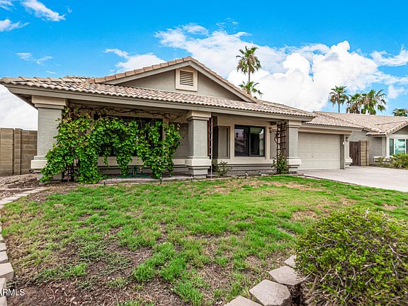 Beautiful home with AMAZING location near Chandler's bustling downtown area. Just up the street from tons of restaurants, festivals, and nightlife to enjoy. Just a few houses away from San Marcos Park and San Marcos Golf Course. Vaulted ceilings and plenty of natural light. Citrus trees and grape vines for those with a green thumb. The family room has sliding doors leading to the backyard for seamless indoor-outdoor living. The large main bedroom boasts an ensuite with dual sinks, a soaking tub, and a walk-in closet. Cozy backyard with hot tub is perfect for entertaining friends and family. Fully paved side driveway and RV gate to the backyard for storing toys or extra parking space. Tile throughout the home and newer water heater. Come take a look!