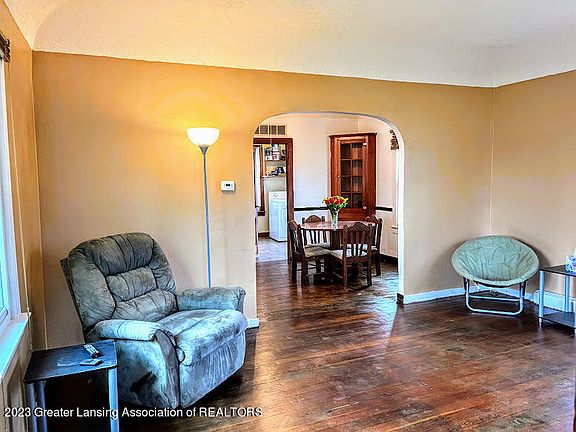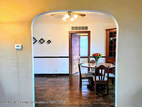 Back on the Market due to Buyer Financing! This classic ranch home sits on a corner lot close to down town St. Johns and US 127. Hardwood floors span the living and dining rooms, and an arched doorway separates the two spaces adding character and charm. Inviting front porch pulls you in from the sidewalk and tree-lined street. Two car garage with extra work shop leads to fenced in back yard, and back entrance.