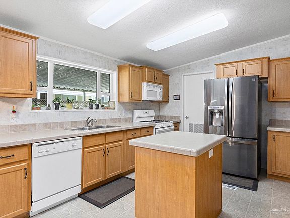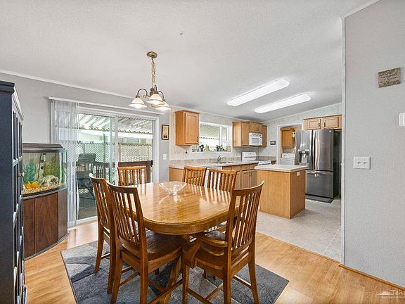 SO ADORABLE and affordable living at it's best for those 55 and over! This neat and clean mobile home located in a great senior park offers so much! Fresh exterior paint and brand new heat and a/c are added bonuses on this cutie! With laminate flooring in the living area and one bedroom, newer carpet in the primary bedroom and an open and spacious split wing floor plan, this home will WOW you the minute you see it! The fireplace is a delight on cold rainy days and is the focal point of the living room. The kitchen has an island perfect for meal prep and there are two decks, front and back for comfy summer sipping! The primary bedroom and bath are very large and offer a walk in closet, room for as much furniture as you may have and a bathroom soaking tub fit for royalty!This one won't last long!