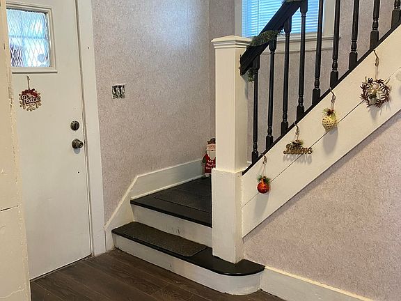 This loving rehabbed home has been owned by the same family for over 60 years. Hardwood staircase has been repaired and painted with modern black/white contrast to make it a focal point of the home....until you see every other room! Kitchen at the front of the home with decorative fireplace and two large windows for beautiful sunlight. Huge living room has plenty of space for eating area at either end. Easy care plank vinyl flooring throughout first floor. Half bath with laundry at rear entry and drop space create a convenient area to get organized! Second story has three bedrooms with new carpet and paint. Full bathroom has all new fixtures, floor, lights and paint. All window coverings and rugs convey. Attic access with pull down steps could be a great storage space or could be finished for another 500 square feet of living space! Huge back yard is ready for all your plans and ideas for outdoor recreation and entertainment. Front porch swing does NOT convey.