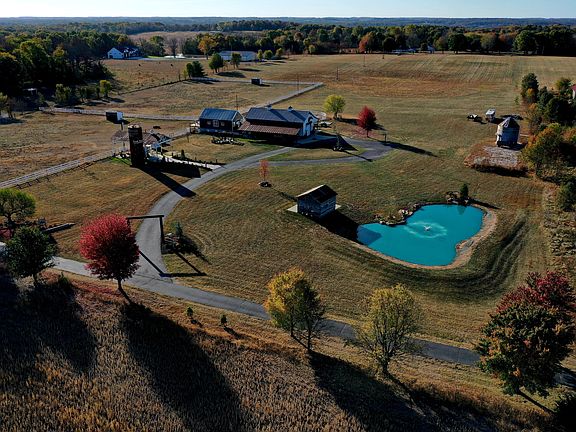 Beautiful farm just minutes from Springfield! This picturesque, gated 11-acre estate is perfect for horses, recreation, and gatherings. The property features a 42x60 barn with tack room, storage loft, automatic fans, large covered patio. There is also an old dairy barn which has been meticulously renovated into a living space with a kitchen, bathroom, and large deck overlooking the pastures. The new barn features large stalls, tack room, feed room, and a second story (unfinished) apartment that is 1700 sq ft. An 1830's log cabin sits on the property overlooking a pond There is a large pavilion that can hold 75 people is equipped with electric. Two pastures are fenced with new vinyl fencing and have heated automatic waterers installed and new loafing sheds. Come see this beautiful farm!
