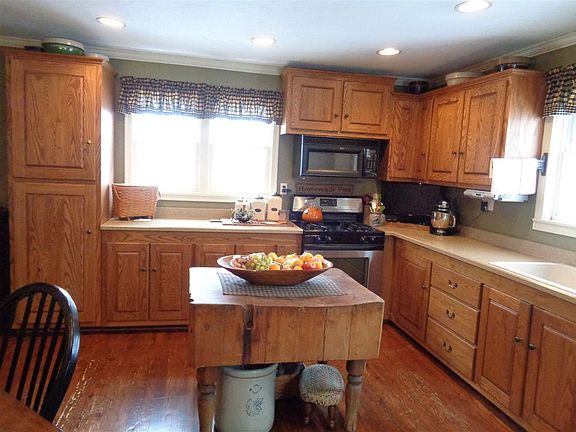 #7188 Beautiful 3 bedroom, 2 bath home that's both rich in character and uniquely updated! A fully appliance oversized Kitchen w/can lighting & wrap around cabinets that includes a large pantry cabinet. Eat-In Kitchen area w/corner hutch. Copper ceiling in separate dining room provides a bar with additional cabinet space & wine refrigerator. Corner gas log fireplace with stone surround in living room. Master Suite on main level features new carpet, a full bath with tile shower and patio doors that open to the new deck outside. Upstairs includes a loft/bonus area, perfect for a craft room or office with a window! Natural Hardwood flooring throughout gives this home lots of charm! Home sits on a 1-Acre corner lot that includes a garden pond, fire-pit & storage shed. 2-Car Garage. New Central Air.