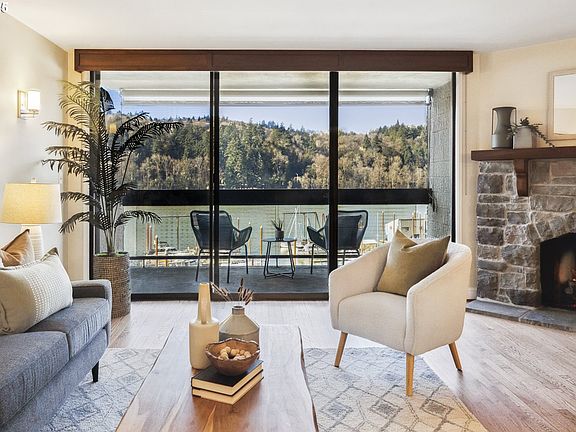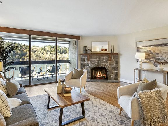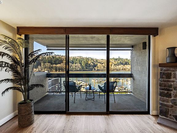 Wake up to stunning, expansive views of the river from the comfort of your riverfront condo ideally located in the sought-after Sellwood neighborhood. Picture yourself sipping your morning coffee while watching the river come to life — what a way to start the day! Enjoy year-round relaxation with the hot tub and seasonal pool, all within a secure, gated building.The spacious living room and dining area are flooded with natural light, featuring a cozy gas fireplace and beautiful wood floors that add warmth and charm. The kitchen is a chef’s dream, equipped with newer appliances, ample counter space, and plenty of storage. A dedicated laundry room offers additional convenience and storage. The private, quiet bedroom is your peaceful retreat, complete with a walk-in closet and a full bath. Step out onto the covered balcony, an ideal extension of your living space, where you can enjoy morning coffee or evening sunsets in a peaceful, intimate setting. Just a short distance to New Seasons, Springwater Corridor, Sellwood Riverfront Park, and the shops and restaurants of downtown Sellwood.