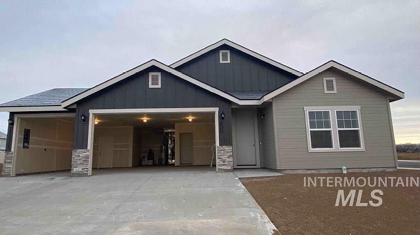 Presold Crestwood with Country Elevation. This home features quartz countertops throughout, fireplace, lvp, man door, covered patio, soaker tub with separate shower, 9' ceiling with vault, deluxe style kitchen, upgraded cabinets, island pendants, window sill and skirt throughout, insulated garage, and much more! Photo similar.