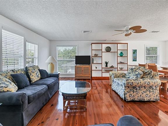 Deeded beach access and French doors opening to a 40-foot rear deck adjacent to Durante Park give the owners complete privacy yet easy access to shaded park walks, fishing, bird watching, and hiking. Restaurants and shopping are nearby. This charming 2-bedroom, 2-bath single-family home has heart pine kitchen countertops and floors. Perfect for investment buyers and/or turnkey owner getaways. No restrictions on pets or leasing. Pecky Cypress exteriors are freshly painted, roof replaced in 2005.
