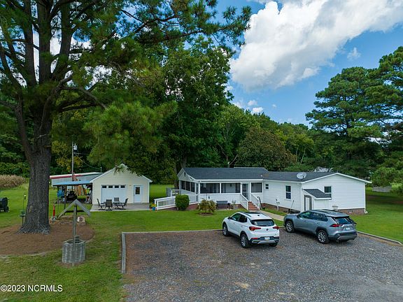 desk that is moveable if wanted/needed. Touch faucet, double sink, pot filler above stove. Hot water heater was replaced during the 2018.,HVAC 2021. Large Living room with wall TV that conveys. Both bathrooms were upgraded with luxurious tile and vanities. Primary bedroom includes an ensuite. The spacious screened in porch which was part of a stick built addition is a great place to sit and relax. The 1 car door garage/workshop is stick built (480 SF)with electric. Additionally there is a stick built shed. and a lean to for your yard equipment. Meticulously landscaped yard. Home Electrical panel was updated in 2018, 200 amps for home & 200 amps for workshop. Part of Home remodel in 2018;Plywood affixed on all sides of house,new insulation on all sides of house and in attic, new siding all around the house, new roof and shingles and new carpet and flooring installed during the remodel of the house. The new screened porch built in 2019 includes a custom-built port hole window.This is one home you do not want to miss.Centrally located easy access to OBX, VA ,EC.  Come enjoy this country home. Call today!