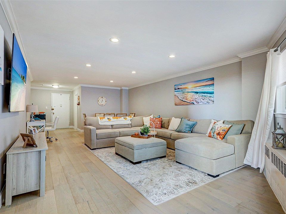 Welcome to Beach living in this large, HGTV Style one bedroom, one bathroom unit with a private terrace with direct ocean views in the Riviera Towers. Located on a quiet beach with immediate access to the beautiful boardwalk right next door. Amenities include an indoor heated pool (Open 24-7) with an incredible ocean backdrop, outdoor sundeck, gym, sauna and party room so you can enjoy resort-style living year round. This unit has been COMPLETELY remodeled and features high end kitchen and bathroom finishes, beautiful hardwood floors, LED Recessed lighting, crown molding, updated electrical services, abundant closet space, and laundry on every floor. The large living/dining room combination opens to a sleek contemporary kitchen with quartz counters with a private bar area adjacent, modern white cabinetry and stainless-steel appliances, no detail has been spared. A private ocean view terrace is the icing on the cake. You don't want to miss this unit!