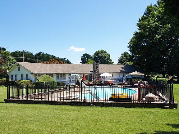 Sprawling Custom Built Ranch Home on 1.4 Acres in Doylestown Township! Stunning and Stately concrete fountain with lighting is a seldom found show piece welcoming you to such a magnificent property. Jaw dropping curb appeal is created by meticulous landscaping with mature trees, perennials throughout, concrete fountain, in-ground pool, patio and walkways. Over 2,000 sq/ft ranch style home offering 4 bedrooms and 3 full bathrooms is well laid out with an open, spacious and roomy interior design. Elegant front foyer with slate floors and two stone, built in planters will welcome you through the front double doors. Flowing living, dining and family rooms offer two handsome fireplaces, hardwood floors, bay window and sliding glass doors out to rear pool and patio. Spacious eat in kitchen with built ins as well as a formal dining room with built in china cabinet. Four exceptionally large bedrooms with cedar closets. Master suite beams with a private full bathroom, cedar closet and sliding doors out to private patio. Oversized 2 car garage with inside access and e-open completes the 1st level. Full basement is 1/2 finished offering a 60'x16' recreation room with full wet bar and an additional 60'x16' storage area?Yes- two(2) 60'x16' basement spaces! Full length floored attic with pull down stairs is H.U.G.E- more than enough storage space in this home. Outdoor pool living at its finest outback- large stone patio leads up to a fenced in in-ground pool with concrete patio and sliding board. Built in stone bar-b-que and a nice flat and open yard is ideal for all sorts of summer fun. Owners have just replaced the roof and installed a brand new water heater. Central Vacuum, central A/C, Plenty of driveway parking, stately corner lot and much more. Located in highly desirable Doylestown Township, Central Bucks School District and only minutes from downtown Doylestown- this property has everything you'll need in a home and location.