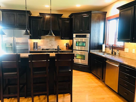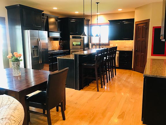 This is an amazing 1 ½ story home located in the popular Rustic Green subdivision. It is a great neighborhood in the North Scott school district with over 4,500 finished square feet, perfect for a family! The home features 4 bedrooms and 5 bathrooms. The large first floor master suite includes a bath that hosts a whirlpool tub, fully tiled shower with double shower heads, his and hers vanities and a massive walk in closet. The 2-story great room has floor to ceiling windows, a gas fireplace, ash hardwood floors throughout, and a full view of the open 2nd story catwalk. The eat-in kitchen allows for a second dining space, a large two-tiered island perfect for stools and additional seating, granite countertops, double ovens (with convection option), a 5 burner gas range, and a walk-in pantry. Upstairs includes 3 additional bedrooms. Two of which share a full Jack and Jill bathroom with a double vanity. The third is complete with on-suite bathroom and all upstairs bedrooms are complemented with their own walk-in closets. Also upstairs is a large 12 X 26 rec. room currently used as a play room. The basement has recently been finished in 2017 with about 1,300 finished square feet. It features a large custom bar, with custom cabinets and quartz countertops and under lit cabinetry and bar lighting. The rec room in the basement features a wood plank accent wall, an electric fireplace and more cabinets. The basement also features a separate 11 x 23 workout/gym room with a large mounted mirror and professional ½” thick rubber gym flooring.
