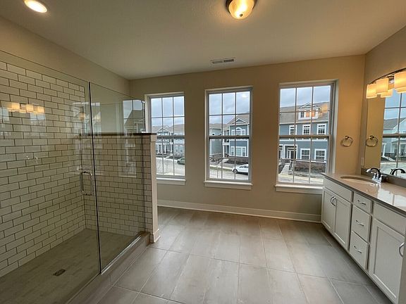 Luxurious yet comfortable describes this Leghorn floorplan that begs for you to entertain. The gourmet kitchen has an abundance of Quartz countertops and sleek, modern cabinets while the family room offers a comfortable space to relax. 10' ceilings enhance this home's sense of spaciousness. The elegant Owner's Retreat is the perfect place to relax and unwind. You can even sit out on your private balcony that overlooks the green space. The indulgent Owner's bath does not disappoint with it's abundance of natural light, tiled supershower, and grand walk-in closet. One of the secondary bedrooms is ensuite to the full bath with double sinks. Grace and elegance are the hallmarks of this luxurious home in Gramercy West by David Weekley Homes.