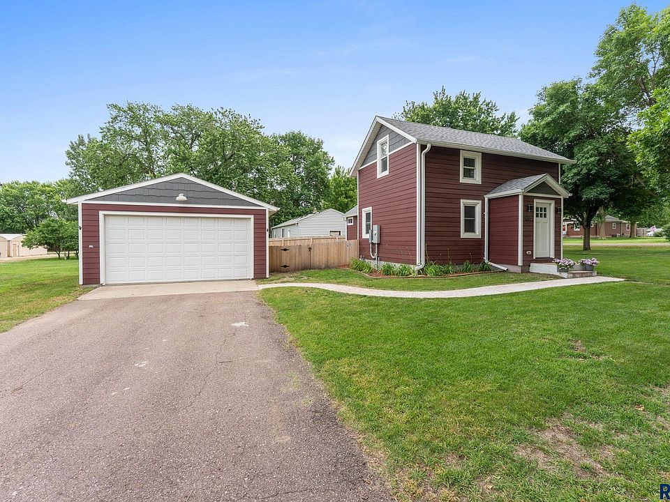 Move-in ready Valley Springs stunner! Located just 15 minutes east of Sioux Falls. This home embodies timeless charm, with all of the modern upgrades that are certain to make you swoon. The rich exterior color, prominent flower beds and corner lot filled with luscious green grass and mature trees lining the property give life to the alluring curb appeal. The interior is filled with character, personality and a modern grand stair case, that captivates the height of the ceilings, the large windows add the perfect splash of natural light in all the right places. Key Features include; high ceilings, a well-done galley kitchen with vibrant dark cabinetry, quartz countertops and a captivating tile back splash, a full primary ensuite with a luxurious bathroom illuminated by extravagant black and white tile patterns, a Formal Dining space perfect for entertaining with easy access to the back yard and a beautiful stamped patio. The perks don't end there, the upper level features a large bedroom, with a loft space, perfect for a book nook or home office. The basement offers a cozy family room, under the stairs storage space, a large utility room, and a grand bedroom with a large closet. This home was fully renovated 2023, New roof, siding, windows, flooring, paint, carpet, tile work, stamped patio, A/C, appliances, cabinets, counter tops, and railings. Is your bag packed yet?