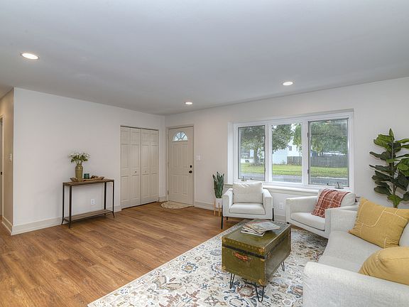 Step into this completely remodeled showstopper where modern design meets everyday comfort! This 3-bed, 1-bath ranch has been professionally designed from top to bottom - featuring luxury vinyl plank flooring, stunning quartz countertops, dreamy backsplash, and a custom built-in breakfast nook with butcher-block seating and drawer storage. The kitchen is a dream with brand-new stainless-steel appliances including range, microwave, dishwasher, and garbage disposal - plus endless cabinet space for storage. Just off the kitchen, you'll find the laundry room is made stylish and convenient with Samsung front-load washer and dryer topped with double quartz folding shelves. The stunning bathroom features penny tile flooring and custom wall tile and new vanity, while the primary bedroom highlights a designer accent wall that adds personality and charm. Major updates include a new roof (OCT 2025), furnace, A/C, and water heater (2024) for total peace of mind. Outside, enjoy brand-new concrete driveway, walkways, and a large patio-perfect for entertaining. The oversized one-car garage has new drywall and a pristine epoxy floor, creating a clean, functional space. Laundry is made stylish and convenient with Samsung front-load washer and dryer topped with a quartz folding shelf. Located in the highly desired Coventry neighborhood, near parks, schools, and downtown Crystal Lake, this turnkey, move-in ready home stands out with its designer finishes and timeless appeal. No gray and white here-this one is full of warmth, style, and personality! You'll be the talk of the neighborhood at 600 Sussex Lane!