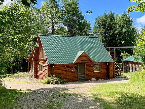 This 4 acres is located Southeast of Parishville andfeatures an authentic Adirondack Log Cabin overlooking the beautiful West Branch of the St Regis River. The cabin is 800' in size with a sleeping loft and room for a second bedroom facing the water. There is a full bath, septic system, well, and a solar/generator system in excellent working condition that provides power to the home. The cabin is heated with a wood stove and propane monitor for backup. In addition to the cabin is a small rustic guest house and a 400 square foot workshop and storage barn. The setting is spectacular, with 401' on the St Regis, which drains a large wilderness area in the NW corner of the Adirondack Park, and is known for its excellent brook trout fishing. The terrain slopes gently to the river with a nice path that leads from the cabin to water’s edge. The forest consists of an open stand of hemlock and hardwood, making for a very private and attractive setting. Not far from the property is the Five Mile Conservation Easement, which allows for miles of access for canoeing and fishing in the St Regis River. From the property you are able to go directly onto the county road which provides miles of snowmobiling and ATV riding on the St Lawrence-Franklin County trail system.