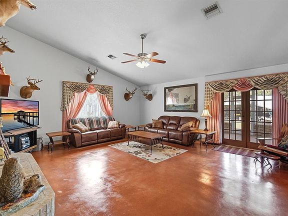 Your home search just came to a screeching halt! 11.48 fenced in acres tucked away on a private dirt road where you have all the space to fish your own pond and bring your animals. Don't forget your boat since you'll have nearby access to the St. Johns river! When you walk into this 3 bed 2 bath home you'll immediately notice the high ceilings and open feeling of the living room, kitchen and dining room combo which is perfect for hosting guests for every party. Your kitchen features a breakfast bar and is ready to go with all appliances. In the mornings, enjoy your coffee out on your screened in porch where you can watch the deer and wildlife stroll through. With the upcoming fall and winter evenings, the wood burning fireplace in the living room will be the place to be warm and cozy! The covered shop is great for outdoor projects, or easily transform it into a barn for horses, sheep, goats, chickens, cows - you name it! Don't miss the opportunity to own a home that offers the privacy you've been looking for but is also close enough to commute to Daytona, Orlando, shopping and local attractions!