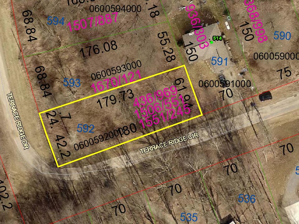 Corner lot located in Grand Valley View Subdivision, situated on the corner of Terrace Ridge Drive and Terrace Ridge Circle, lot measures .2587 of an acre, located in Brown Township and in Mount Vernon Schools, priced to sell fast at $8,500.