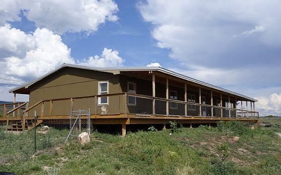 Spacious, 4 bedroom,4 bath, manufactured home on 13 ac. (fenced). Grassland with incredible views in 4 directions of Ramah Reservoir, red striated cliffs, the Zuni Mountains and Savoya Valley. Wrap around deck on all 4 sides of the home. Detached work shop which is insulated, 30'x 50, two overhead garage doors, with a wood stove inside. Metal garage, two sheds for added storage. Some garden areas. Vaulted ceilings in the living room, fireplace in the den. All new flooring throughout the home.