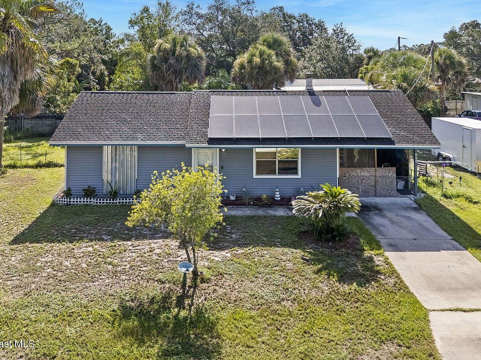 This cozy 2 bed 1 bath offers a wood burning fireplace and located on a corner lot. Laminate and tile flow throughout the main areas with carpet in the bedrooms. The bathroom has been updated. Huge back Florida room with full windows. The home has solar panels keeping your energy bill low through these hot summer months. Move in ready and waiting for it's new owners. Close to shopping and restaurants.
